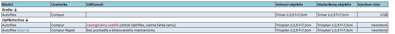 Autoflex (vzor 1) vyrábaný v Optikotechne je v podstate identický ako od firmy Bratři Bradáčové. Optikotechna vyrábala aj zjednodušený Autoflex (vzor 2), ktorý nemá automatické počítadlo a blokovanie posunu filmu.