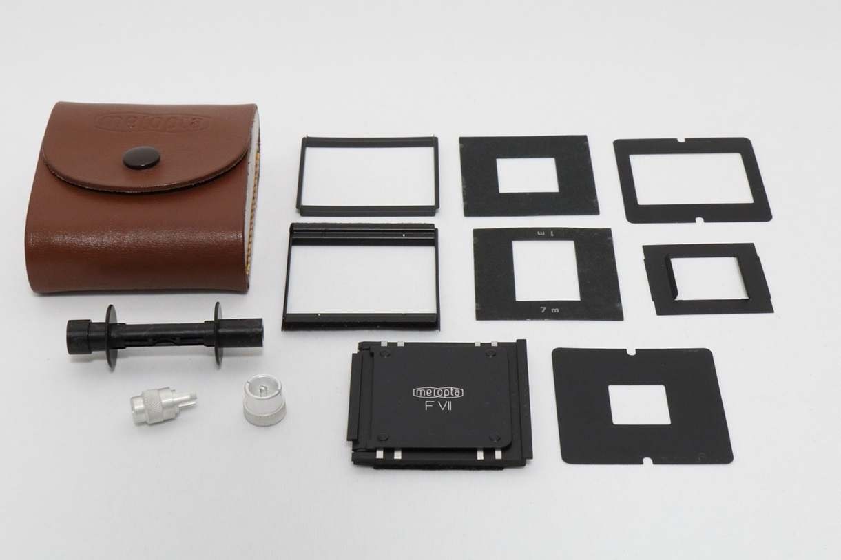 Text opisuje Flexaret VI s uzávierkou Prontor-SVS (do času 1/500), ale fotky sú pre Flexaret Va. Adaptérová sada má úchyty ako pre Flexaret VI, ale je v brašni pre Flexkin Va.