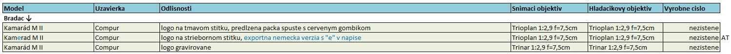 • Objektívy: Trioplan 1:2,9 f=7,5cm (alebo 1:4,5 f=7,8cm), Trinar 1:2,9 f=7,5cm (alebo 1:4,5)